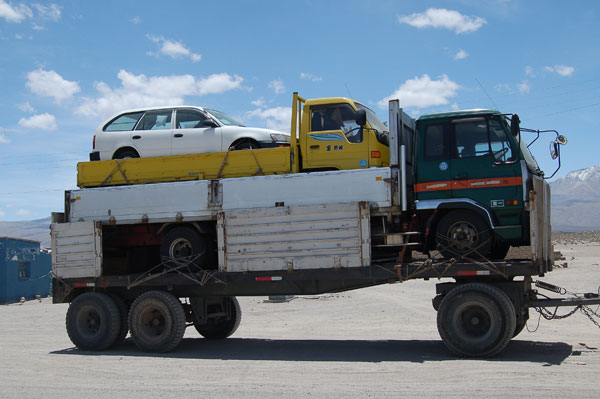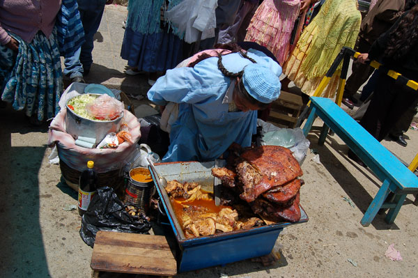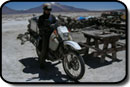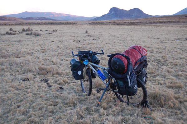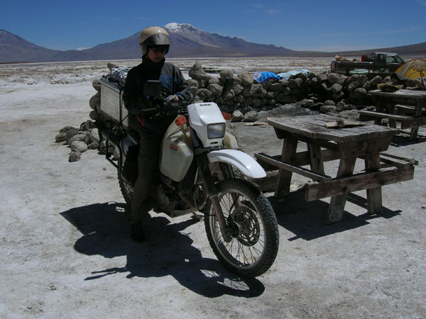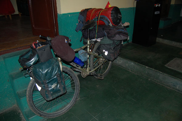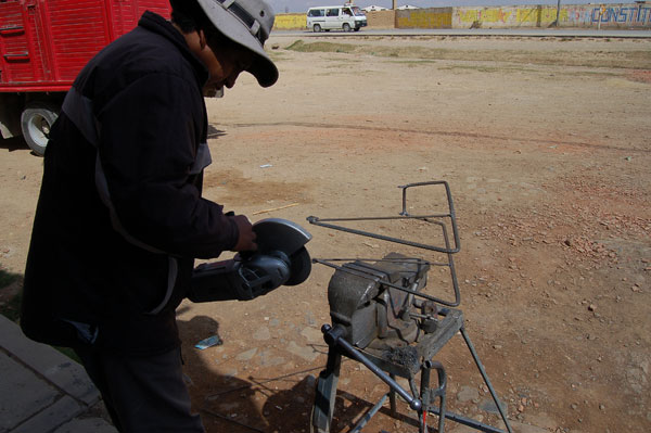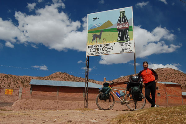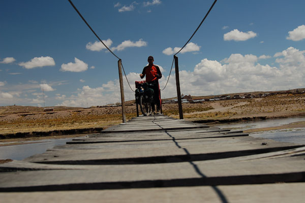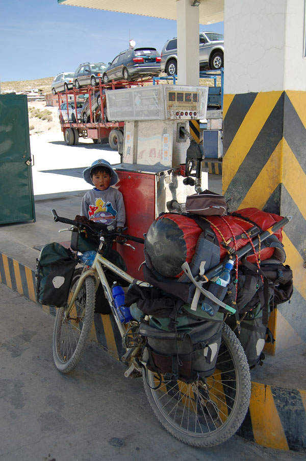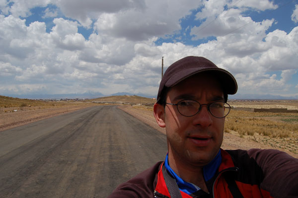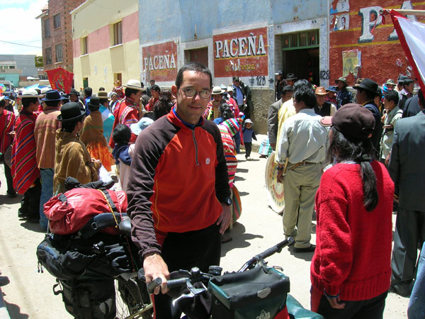 Tura propriu-zisă o încep în El Alto, oraşul lipit de La Paz şi situat pe altiplano la 4100 m. După nici 20 de km s-a rupt portbagajul din spate. În satul Viacha, unde toţi locuitorii şi oaspeţi veniţi din La Paz, El Alto şi satele învecinate serbau ziua patronului satului, a trebuit să mă opresc la un sudor şi să îmi fac un portbagaj solid din fier beton. Următoarea dimineaţă pornesc după o mică promenadă printre grupurile folclorice locale şi câte un beţiv vesel spre pustietăţiile peisajului altoandin. Punctual la ora 12 începe să bată un vânt infernal ce nu te lasă nici să respiri în linişte. Totul ce nu e fixat tare pe bicicletă începe să facă un zgomot asurzitor. Mă dau bătut şi accept cu uşurinţă principiul pauzelor lungi şi dese, cheia marilor succese.