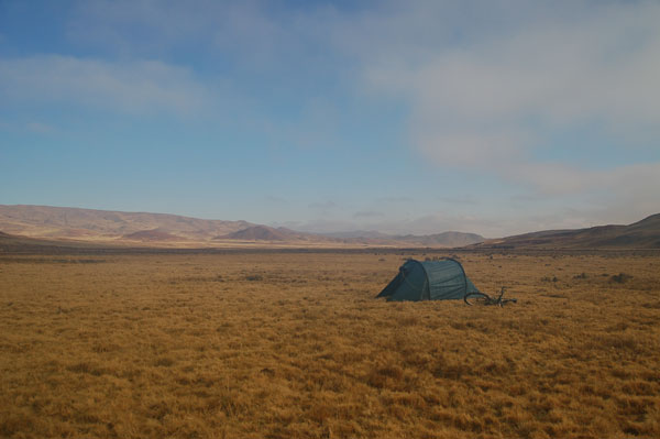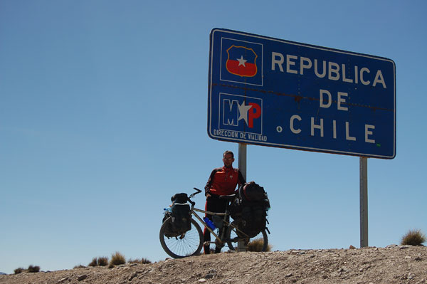 Dimineaţa, din nou pe bicicletă, a urmat o urcare de 3 ore pe o şosea imaculată până în pasul Tambo Quemado (4660 m) care constituie şi graniţa cu Chile. La 7 km în aval se află postul de frontieră chilean Chungara unde am fost invitat de către un militar care-şi facea antrenamentul de triatlon să dorm la ei în campament. După nouă zile, a fost o plăcere să mă spăl din nou cu apă caldă. Ziua următoare am coborât cu autostopul până în primul orăşel, Putre, pentru a mă aproviziona din nou cu mâncare şi cu o nouă manetă de schimbător.