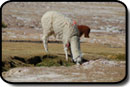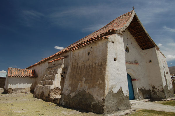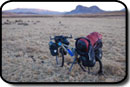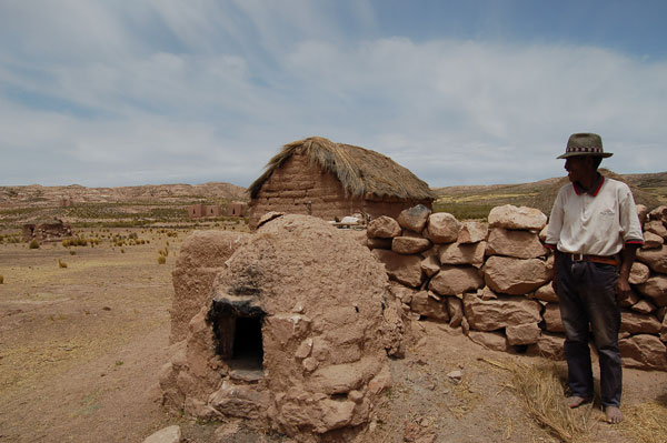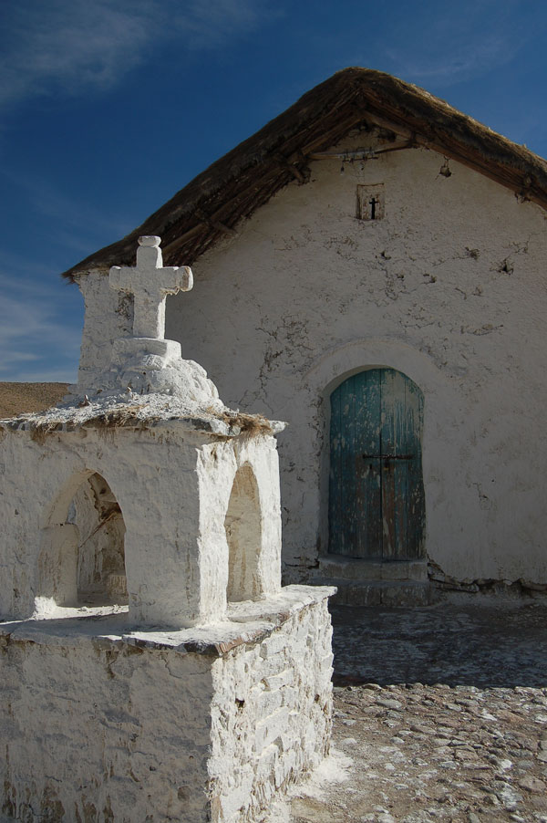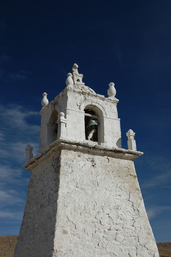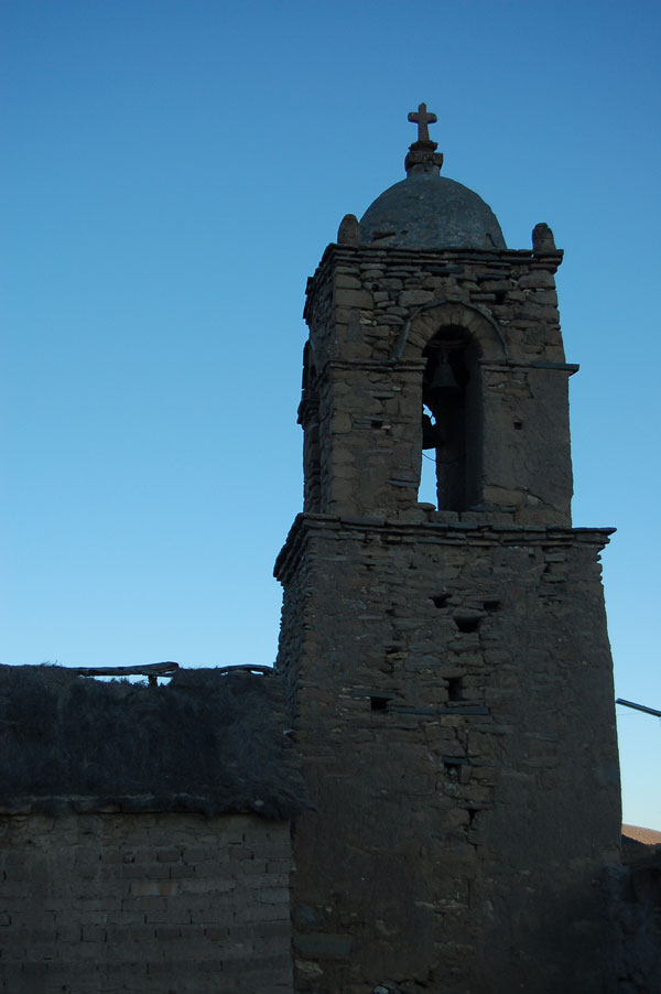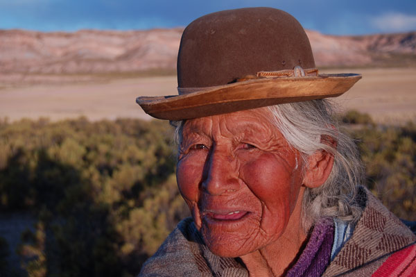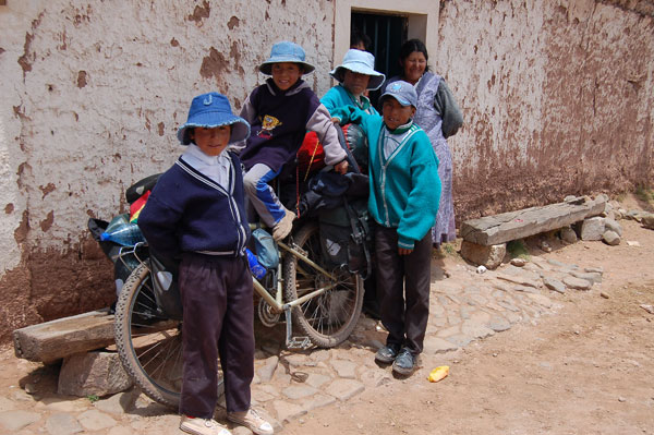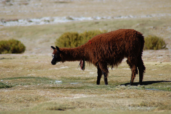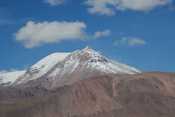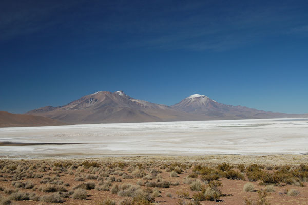 Cu cât avansez spre graniţa cu Chile, peisajul devine mai arid, distanţele între sate tot mai mari şi satele tot mai mici iar drumurile mai proaste. De multe ori o iau pe poteci care sunt mai bune decât drumurile pentru camioane. Cum pentru zonele rurale din Bolivia nu prea există hărţi bune, prin sate trebuie să mă interesez de drumurile existente. Puţinii serranos, cum sunt numiţi locuitorii din munţi şi de pe platoul altoandin, pe care-i întâlnesc de-a lungul mă salută prietenos şi se bucură de o scurtă conversaţie cu un gringo (aşa sunt numiţi străinii). Locuitorii de aici se ocupă cu agricultura şi păstoritul de oi şi alpaca. Trec prin zone cu un peisaj spectaculos şi nu mă pot abţine să fotografiez la tot pasul ceea ce văd: abrupturi ravenate, văi largi, lacuri sărate secate şi crestele înzăpezite ale celor două lanţuri paralele ale Anzilor. Cortul mi-l pun de obicei acolo unde mă apucă noaptea, totuşi încerc să găsesc un loc plăcut, în cel mai bun caz departe de sat şi pe malul unui râu sau pârâu ca să mă pot spăla. După două zile am deja vederea liberă spre majestuosul vulcan Sajama, care se înalţă lângă vulcanii gemeni de pe partea chileană, Pomerape şi Parinacota. Sajama va fi punctul de orientare pentru următoarele 4 zile, când în plină pustietate la intersecţii nu e nici un indiciu în care direcţie trebuie să o iau. De două ori mă şi pierd şi trebuie să mă întorc pentru a lua calea alternativă. Pe penultima etapă înainte de satul Sajama mi se rupe mecanismul schimbătorului pe faţă şi sunt obligat să pedalez cu foaia mică încă 50 de km.