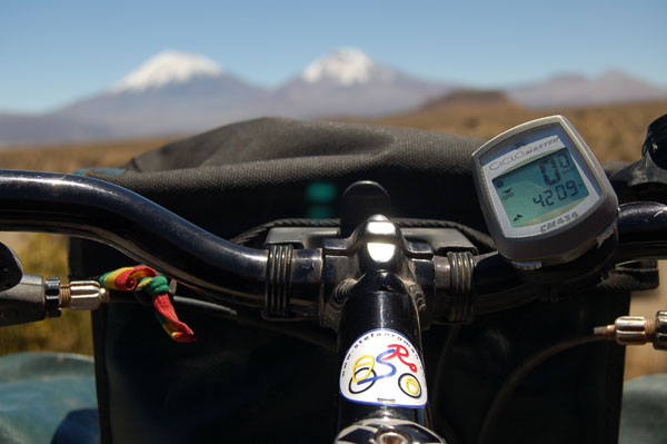 După mai bine de zece luni de la ultima tură cu bicicleta în Jamaica, a sosit din nou momentul de a mă urca în şaua bicicletei şi a cunoaşte noi colţuri a acestei fascinantei lumi. De această dată m-am îndreptat spre meleaguri deja cunoscute, spre Anzii bolivieni şi chilieni. Eram deja de mai bine de 4 luni în Arequipa şi se apropia meritatul concediu. Cu autobusul am ajuns în capitala Boliviei, La Paz unde m-am pregătit mai întâi pentru o tură de gheţar de două zile pe vârful Huayna Potosi (6088 m).