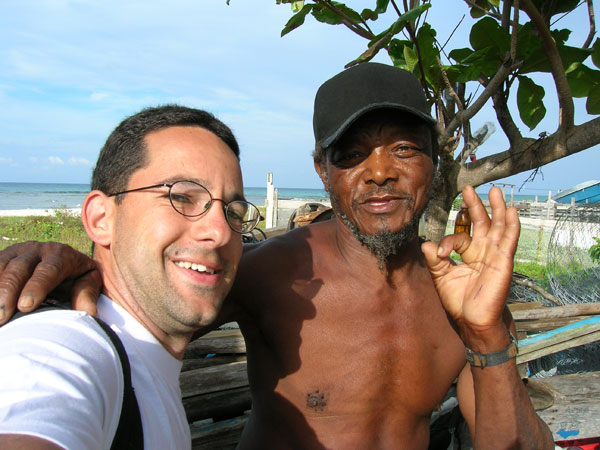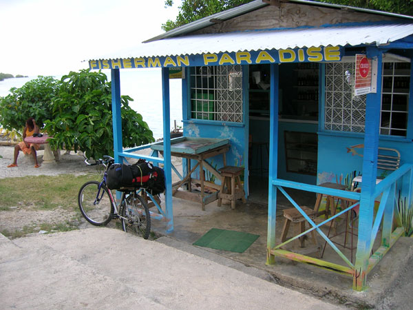 Baie nu apuc să mai fac până în ultima zi fiindcă nu prea sunt plaje frumoase unde să ma opresc. Ajung după două zile şi îmi montez cortul în spatele aeroportului, în comunitatea de pescari White Sands. Lumea din nou mă primeşte călduros, Tiger, un bătrân pescar şi scafandru îmi pune la dispoziţie un loc pentru cort. Toată seara stau la poveşti cu pescarii de acolo, dezbatem toate temele posibile, de la fotbal la politică şi contrabandă. Bem bere şi ne simţim bine. Dimineaţa mă duc în oraş cu David să cumpăr nişte cd-uri cu reggae şi jazz jamaican, apoi mă plimb pe unde încă nu fusesem la început.