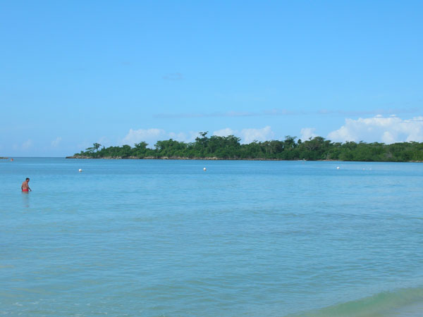 Spre vest deci. şi pe contrasens. Nu este pentru prima dată când trebuie să fiu atent la KEEP LEFT, dar trebuie să mă obişnuiesc. Până la Negril, principala locaţie turistică cu nenumărate resorturi la plajă, traficul este intens. Prima zi ajung la Lucea, un orăşel la 50 km de Mobay. Nimic interesant până aici, doar nişte baruri "Cold Beer Joint" şi parcări cu artizanate. îmi pun cortul în interiorul unui azil pentru bătrâni şi nebuni. La ora patru dimineaţa cineva nu mai poate să doarmă şi trage ture într-o veselie în jurul cortului. La trezire am deja mai mulţi oaspeţi, dar sunt destul de liniştiţi. Plec mai departe, vreau în sfârşit să fac baie în mare. După două ore ajung la faimoasa plajă din Negril. Este cea mai mare plajă de nisip fin din Jamaica, 7 km într-un golf cu apă străvezie.