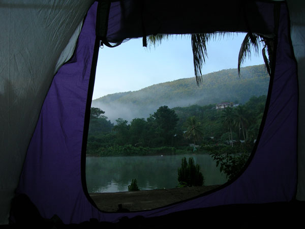 Cerul senin din această dimineaţă permite o vizibilitate superbă spre Blue Mountain Peak, cel mai înalt vârf din Jamaica. Seara voi vedea acest vârf din cealaltă parte a insulei, din Port Antonio. înainte de asta însă vin unele din cele mai frumoase locuri din Jamaica. Primul este Devil's Elbow, o vale îngustă cu pădure deasă plină de vegetaţie unde papagai şi maimuţe scot urlete ameţitoare. Apoi vine Long Bay Beach, o plajă de nisip la poalele munţilor cu cocotieri şi Blue Lagoon, un golf ascuns cu apă adâncă şi clară. Cred că am şi cel mai frumos şi sigur loc de cort din Port Antonio, la Jamal School în colţul golfului cu privire spre oraş. Familia care administrează mica clădire de scoală mă primeşte foarte ospitalier. îmi las toate lucrurile acolo şi mă duc în oraş să mănânc ceva şi să beau o bere bine meritată. La piaţă găsesc şi şlapi noi, deşi plătesc 60 J$ în plus faţă de preţul din Kingston. Măcar au mărimea mea. în seara asta mănânc ceva nou, conch - o tocană de scoici cu ardei iute. Foarte iute, dar delicios.