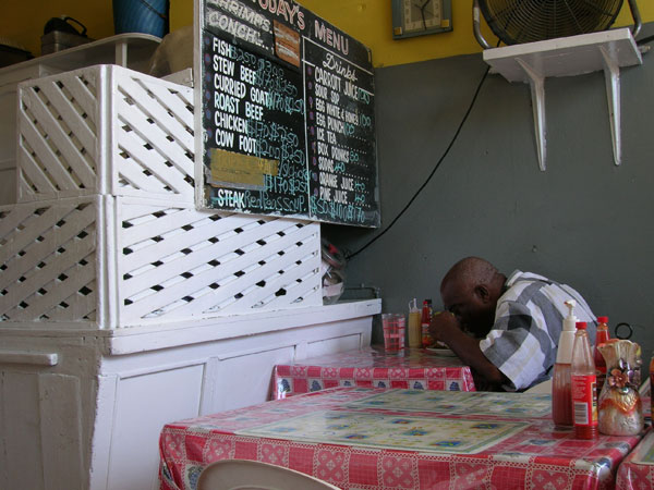 E ziua cea mai liniştită din săptămână pentru a vizita centrul. Nu e piaţă azi, doar cea din piaţa centrală unde vânzătorii îşi expun marfa pe trotuare. Prilej bun pentru a căuta şlapi noi, haiwainele mele dragi din Brazilia au fost ronţăite peste noapte de un câine de pază. Vizitez rapid centrul oraşului, pustiu şi neatrăgător pentru mine. înainte de ora trei sunt deja ieşit din Kingston, îndreptându-mă spre Morant Bay în estul insulei. Drumul pitoresc de-a lungul coastei abrupte are multe urcuşuri şi coborâşuri scurte, valurile oceanului sunt mari si se sparg aproape de mal, mirosul de apă sărată se ridică până la stradă. Seara se dă drumul la muzică peste tot, reggae man with all the power, se adună lumea la barbeque şi se bea bere rece şi rom. E ziua cea mai importantă din săptămână, se doarme până la amiază, iar după trezire începe iarăşi chefuitul. Nimeresc la Omar în seara asta, un tânăr informatician care-mi oferă o cameră la el în casă. Stăm la poveşti până târziu seara.