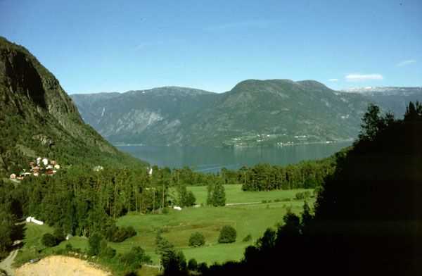Suntem la Sogndal, pe Sognefjorden (1720 km până astăzi). E superb pe aici, numa