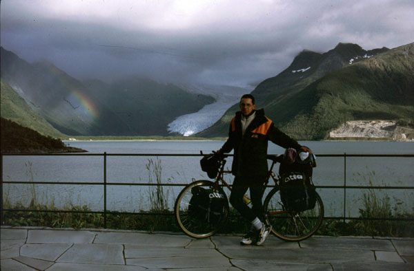 dupa nesfârşite ploi (2 zile non-stop) şi cauciucuri sfârtecate am ajuns în orăşelul de pescari Bodo. Traseul parcurs de la ultima noastră intervenţie a fost foarte frumos, pe şoseaua de coastă "Coastal Route" RV17. Am avut ocazia să ne apropiem foarte mult de un gheţar, Svartisen, o senzaţie incredibilă. De asemenea am putut observa cel mai puternic curent cauzat de maree din lume- Tidevannstrom. Oricum, ultimele 3 zile au fost foarte grele, am cam îngheţat pe ploile scandinave şi au tot apărut probleme cu biţele...