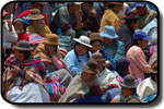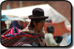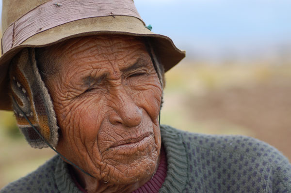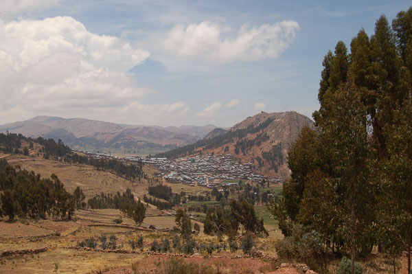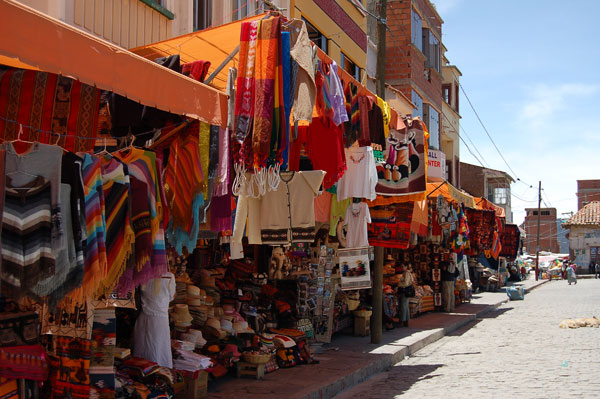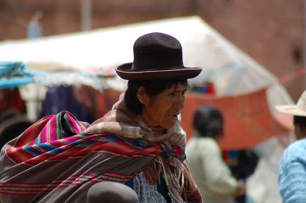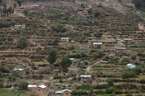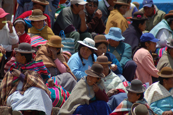 Drumul, care dupa Huancane este neasfaltat, paraseste din nou malurile lacului pentru a urca un pas la peste 4100 de metrii altitudine. O lunga coborâre ma aduce în mijlocul târgului din Moho, micul orasel numit si Jardin del Altiplano (gradina altiplano-ului) datorita padurilor de eucalipt plantate în jurul lui. O manifestatie electorala pentru alegerile locale din luna noiembrie umple toata piata principala, era mare agitatie si înghesuiala, asa ca fac rapid niste poze cu vânzatoarele de legume de pe marginea pietei si ies din oras. Decid sa nu ma îndrept direct spre granita cu Bolivia, drum care ar fi fost mai scurt, ci sa fac un mic ocol care din nou ma aduce la lac, în satul Conima. Asta înseamna din nou o urcare de peste 200 de metrii însa simpla teorie care o aplic cu succes în momente de frustrare este ca fiecare urcare are si o coborâre, asa ca nu-mi mai prea fac griji în astfel de situatii, mai ales ca de obicei privelistea din vârful pasului compenseaza fiecare picatura de transpiratie asudata pe urcare. Pe drumul care serpuieste dea lungul malului de abia mai circula masini. în fiecare sat, partidele politice organizeaza mici petreceri cu muzica si multa bere ceea ce se lasa cu o betie colectiva a barbatiilor din sat, în timp ce femeile continua sa munceasca cu rabdare pe câmp.