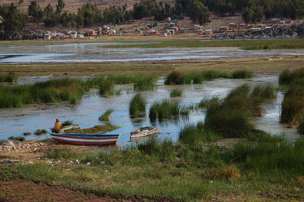 Aflat pe altiplano la granita dintre Peru si Bolivia la o altitudine de 3815 m si cu o suprafata de 8500 km patrati, Titicaca este lacul navigabil cel mai înalt din lume si ofera adapost pentru zeci de specii endemice de flora si fauna. Si pentru locuitorii zonei, lacul flancat de majestoasa Cordillera Real este o sursa importanta de trai stuful care creste abundent la malul lacului este folosit ca si furaj pentru animale sau pentru constructia de barci simple sau chiar insule. Vestitele insule plutitoare Uros din dreptul orasului Puno sunt construite cu acest stuf. Multe familii îsi câstiga traiul zilnic iesind pe lac cu plase de pescuit împletite artizanal pentru a vinde apoi pestii pe pietele locale.