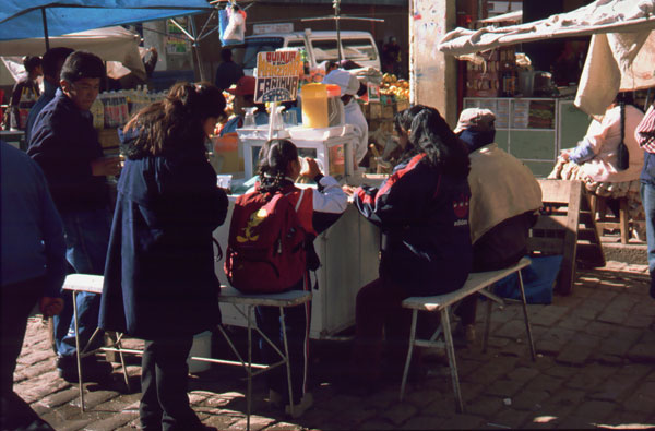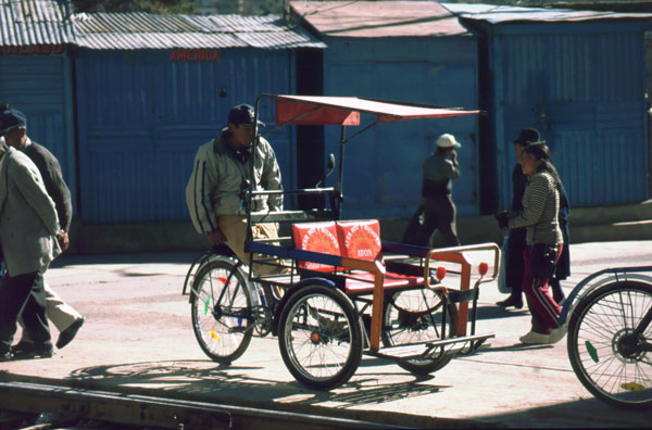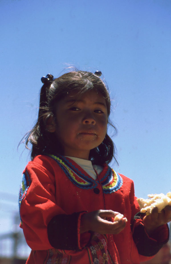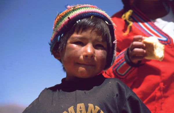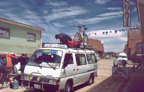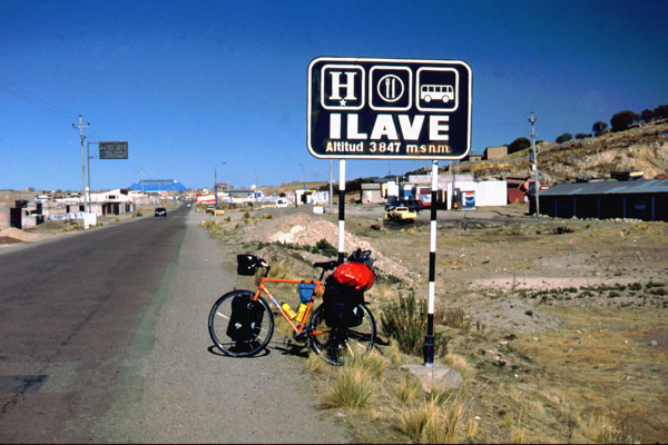 Veste bună. Ultimele doua zile, de la Puno la Desaguadero m-am dat cu biţa. Mă bucur tare mult c-am reuşit, la condiţia mea fizică actuală, la 3800-4000 m .... a mers foarte bine- 165 km până acuma. Si asta pe malul lacului Titicaca. Biţa este destul de încărcată, mai încarcată ca in turele de până acuma. Si cu walkmanul şi o casetă cu Roxette totul merge mai uşor. Câteodată este plictisitor, fiindcă strada e şnur vreo 15 km, fără dâmb sau curba. Lumea este foarte cumsecade, toată lumea ma salută. Mă enervez doar când copii sau adulţii zic: "Mister, dame plata!!" adică sa le dau bani.