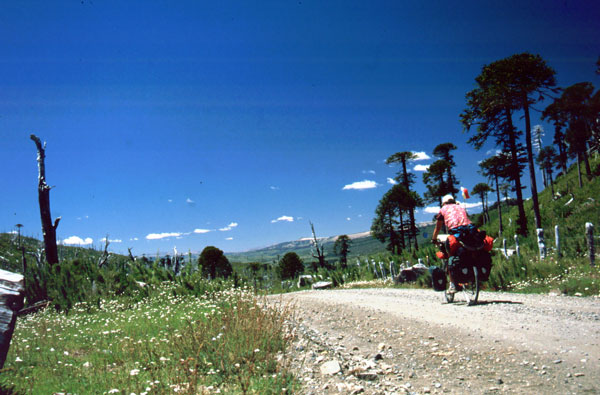 Din Lonquimay, in Chile, am continuat drumul zic-zag spre Icalma, un alt "paso fronterizo" spre Argentina (am ramas insa in Chile). Pe malul lacului Icalma am intalnit un neamt, si el pe bicicleta. Destul de nostim, un tip de 2 metrii, blond pe o bicicletuta incarcata. La niste berule si 2 litrii de vin am stat la dume pana n-am mai putut.... afland ca am intalnit cam aceeasi oameni pe bicicleta in ultimele 2 luni. Sa mai spuna cineva ca America de Sud e asa mare.....