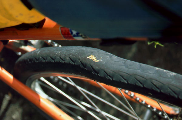 Si eu am simtit lipsa de oxigen. Corpul uman are nevoie de o perioada de aclimatizare, cel mai indicat fiind o urcare zilnica cu 500 de m, riscul de hipoxie fiind astfel minimalizat. Oricum, fiecare corp reactioneaza diferit. Nu trebuie insa uitat ca o urcare prea rapida poate fi in cel mai rau caz fatala. Cam la fiecare km trebuia sa ma opresc si sa trag de cateva ori adanc aer in piept. Senzatia este parca ar mai lipsi de fiecare data o inghititura de aer. O usoara durere de cap acompaniaza senzatia. Drumul, pe care-l vedeam acuma la 20 de km inainte, drept, urca usor spre un vulcan secundar pana la o altitudine de peste 4700 m (n-am altimetru, dar cu niste puncte de referinta cunoscute, se poate estima usor). Aici, pedalatul devine tot mai greu. Pauzele sunt tot mai dese, 3 la fiecare km. In aceste pauze nu prea am ce face, imi sprijin capul de ghidon, numar tumburusii de pe cauciuc sau ma culc pe jos. Cand respir iarasi normal, hop pe bicicleta si dai. Primii 20 de metrii sunt cei mai grei, ai nevoie de o forta foarte mare pentru a pedala si a continua. Plus ca psihicul la asa multe opriri mai si cedeaza. La fiecare pauza, beau cate putina apa - consumul de apa este de 6-7 litrii pe zi. Se pierde foarte mult lichid la acest efort fizic, iar aerul uscat mareste consumul.