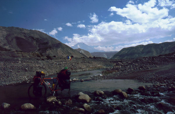 Grabit, fara sa mai astept uscarea cortului, am ajuns apoi pe soseaua binationala. Pe asfalt ai deja mai mare viteza. Dar raceala si altitudinea ingreunau fiecare miscare. Dupa 50 km am ajuns intr-un pas de peste 4700 m. De aici, pana la Mazo Cruz (4000 m) a urmat o lunga coborare, pe langa uriase turme de lama ce pasc in vai si pe campiile irigate.