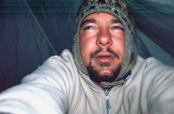 Norii negrii amenintatori se apropiau tot mai tare. Nu mai lipseau doar vreo 5 km pana la soseaua asfaltata binationala spre Desaguadero, la granita cu Bolivia. A inceput o grindina puternica. In cateva minute, totul in jurul meu era alb. Temperatura a scazut brusc cu 10 grade. Se facuse frig. Coplesit de oboseala, am pus cortul. In momentul in care am intrat in cort, a inceput din nou grindina, apoi s-a transformat in ploaie. Ce senzatie placuta este sa-ti gatesti macaroane cu mazare si cas, sa ai un ceai cald in cortul uscat, cand afara sunt 3 grade si ploua. Scurt dupa ce s-a intunecat, la ora 18:30, peretele exterior a cortului a inghetat. In sacul de dormit insa era foarte placut. Problema era ca racisem cu o zi inainte. Din cauza asta, noapte a fost foarte grea, plus ca durerile de cap din cauza altitudinii de 4600 m aproape ca nu ma lasau sa dorm.