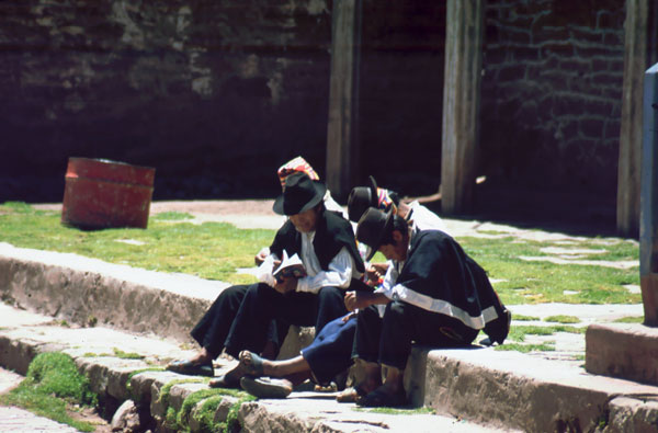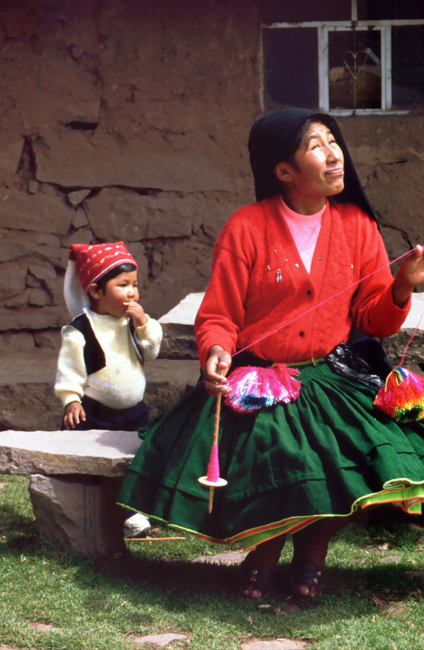 Ieri am fost cu o barca pe insula Taquile. Cu climat mai bland, aflat in mijlocul lacului Titicaca, insula Taquile este populata de 230 de familii care traiesc intr-o comunitate care ofera fiecarei familii sanse egale de a profita din turism. Printr-un sistem rotational, turistii sunt cazati la diferite familii. Circa 60 de cooperative se ocupa de pescuit, agricultura si artizanat. Toata lumea croseteaza aici. Barbati, femei, copii, chiar si in timpul mersului. Sunt produse artezanale pentru turisti care sunt vandute in cateva magazine ale cooperativei. Insula nu beneficeaza de electricitate, asa ca aici fiecare isi poate gasi un colt linistit.