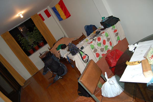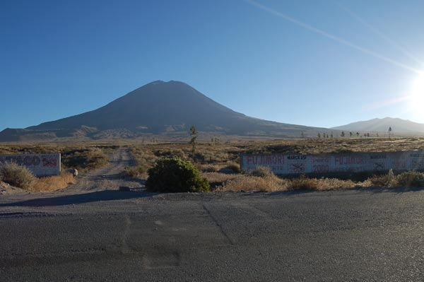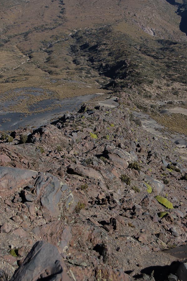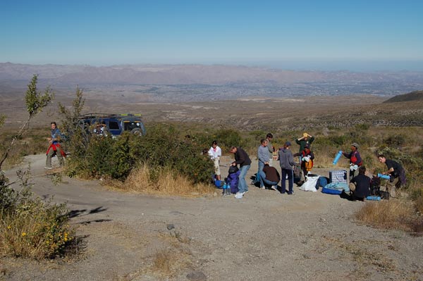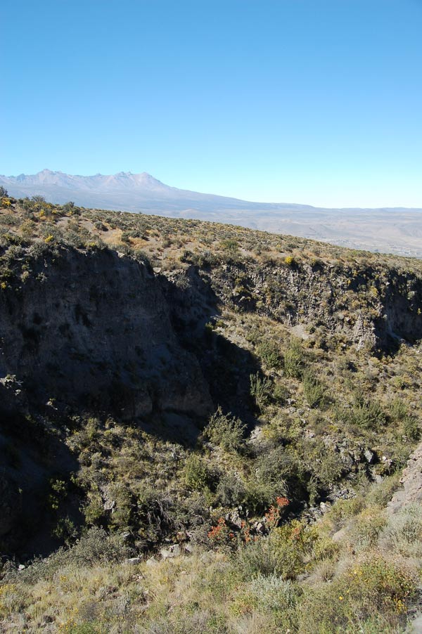 Early in the morning at 6 o'clock I took a bus out of Arequipa to Chiguata (1,20 soles) until the unpaved road (3100 m) leading to the trekking path. The distance of 6 km can be made in more or less 2 hours until an altitude of 3660, where you enter the path. This is the place where the cars bringing tourists have to turn back. There I met a group of US students with their 2 guides prepareing their bags for the same tour. I decided to join (follow) them and make the climb together with them the next day, in order not to get lost somewhere on the path.