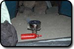 I carried 6 liters of water and food for two days, although the second day is a short one. The food I carried consisted in: crackers (instead of bread), 2 avocados, 2 tomatoes, 4 cooked eggs, sausages, cheese, marmelade, 3 kiwis, 3 apples, 2 bananas, jogurt, 2 instant nudle packs, 3 teabags and my MSR-stove for cooking. As clothes I carried long bikepants (excellent for trekking-tours), a t-shirt, long underwear, windstopper jacket and pants, 2 fleece polos and a pair thick wool socks. The tent, sleeping bag and matress made my backpack weighting almost 25 kg.