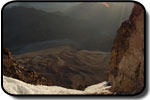 Nici nu ajungem bine la cort că şi începe să bată un vânt extrem de puternic. Mie mi-l şi smulge din două colturi şi aproape cade peste mine... lui David, care si-a împachetat rapid rucsacul îl bate din loc şi cade pe lunga pantă de coborâre vreo 150 de metrii până se opreşte într-o stâncă ... noroc ca nu avea nimica fragil în el. Imi mai mănânc ultimele sandwichuri şi plecăm înapoi spre satul Sajama. După ce mai facem nişte bancuri ne revine şi moralul, ne mai uităm din când in când înapoi şi abia când ajungem la prima tabără, cea la 4800 ne dăm seama că mai aveam destul de mult de urcat până pe vârf. Şi noi ştim de mult că muntii nu pleacă din loc şi că sigur într-o bună zi ne vor da ocazia să ne urcăm mai pregătiti şi mai în sigurantă pe ei. Jumătate de oră ne odihnim în iarba de la tabăra 1, aproape că adormim. De aici mai avem trei ore de coborât până în sat, deja mă bucur de cartofii prăjiti şi grătarul de alpaca ce mă aşteptau la hostal.